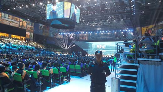 2017年6月27日上午8時,汕頭大學體育園內燈光璀璨,金黃的鳳凰從中央屏幕上騰空而起,繞場一周,拉開了汕頭大學2017屆畢業典禮的帷幕。我司派駐保安員56人參加了安全護衛任務。在總經理王虎的帶領下圓滿完成安全護衛任務,并受到客戶高度認可和滿意。